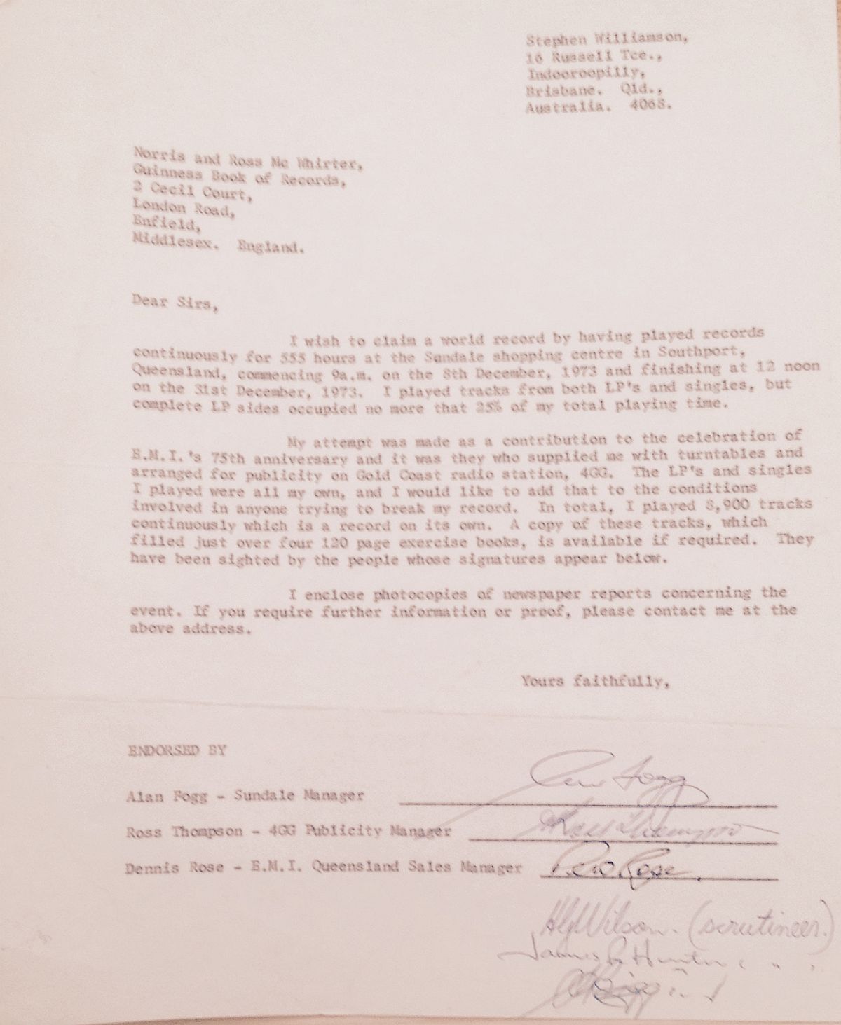 Letters to and from Guinness Records in London
